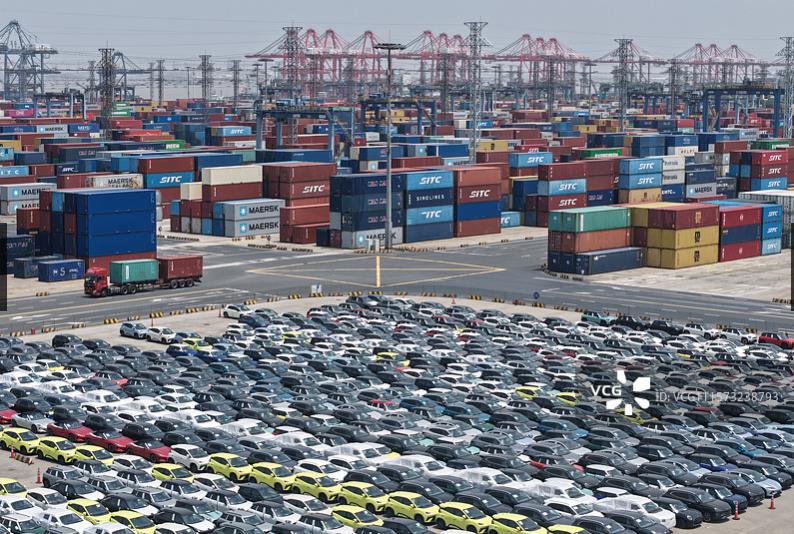 2024年にEUが輸入した電気自動車の総額は152億ユーロで、このうち半数以上は中国からでした。写真は上海港の自動車ターミナルに並ぶ輸出用の中国産EV。