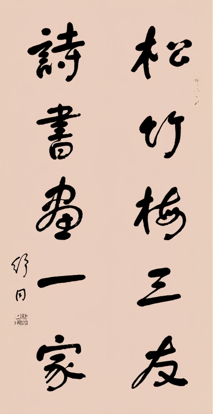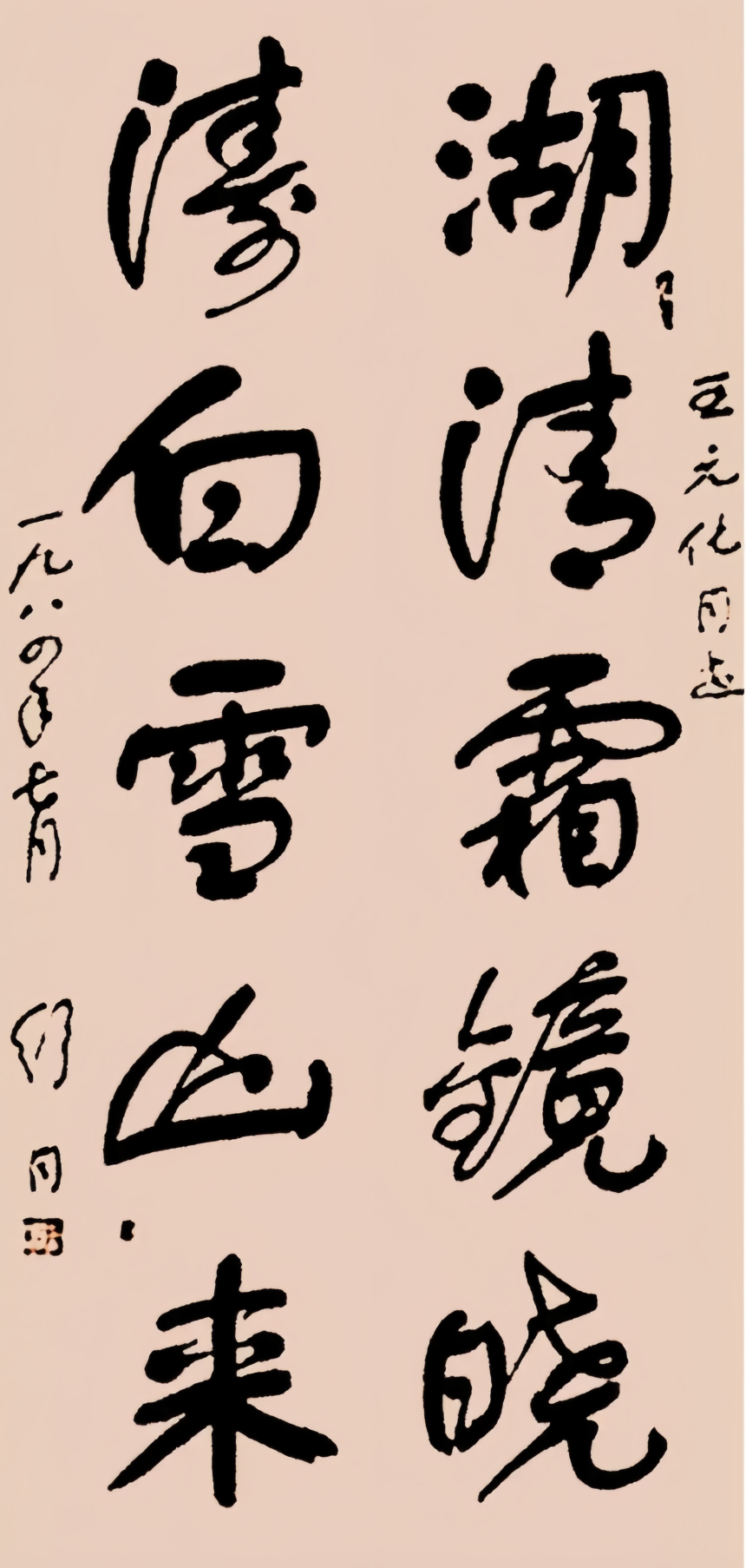 舒同(シュウ・トン)は中国書法界の継承者であり開拓者である。幼い頃から書を好み、5歳で書を学び始め、14歳にして郷里で「神童」「東郷の才子」と称された。古代の碑帖を体系的に臨書し、顔真卿、柳公権、何紹基らに学んだが、古法に固執せず新しさを追求し、精髄を取り入れながら独自の探求を続けた。
