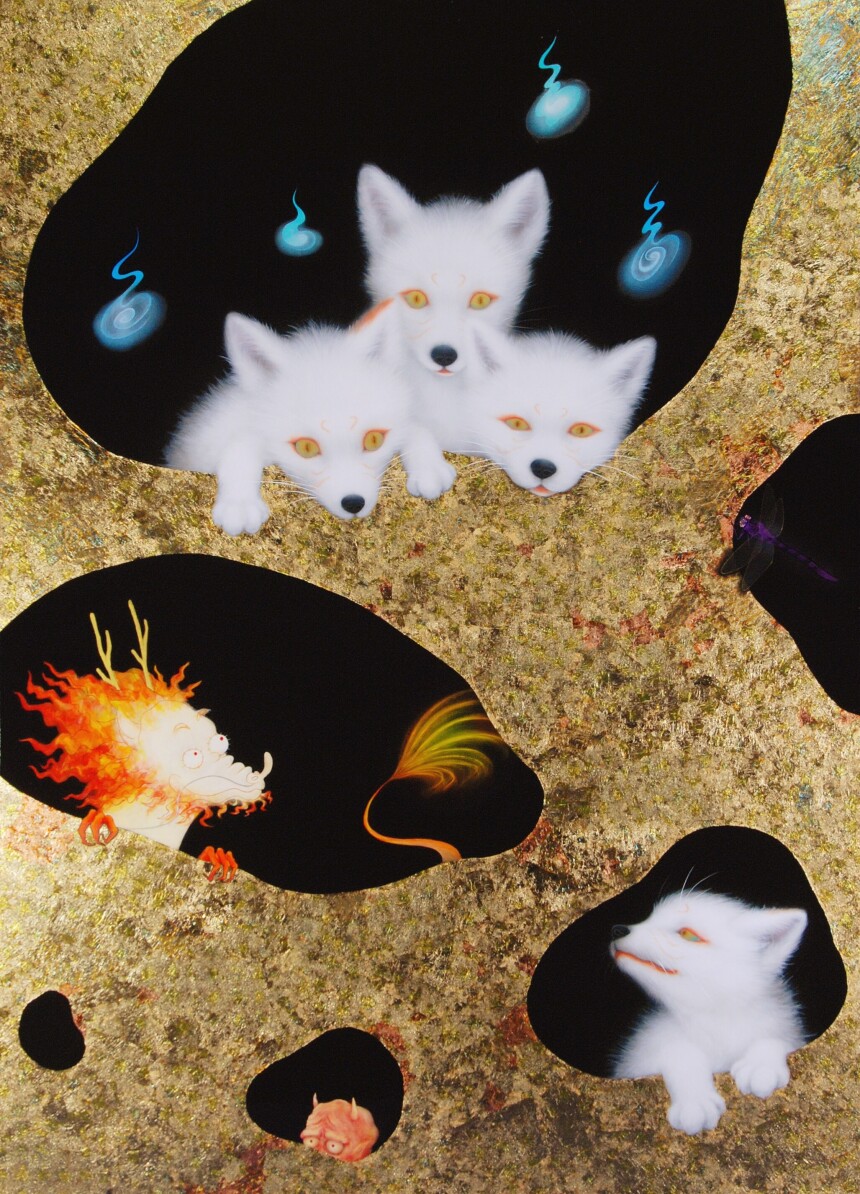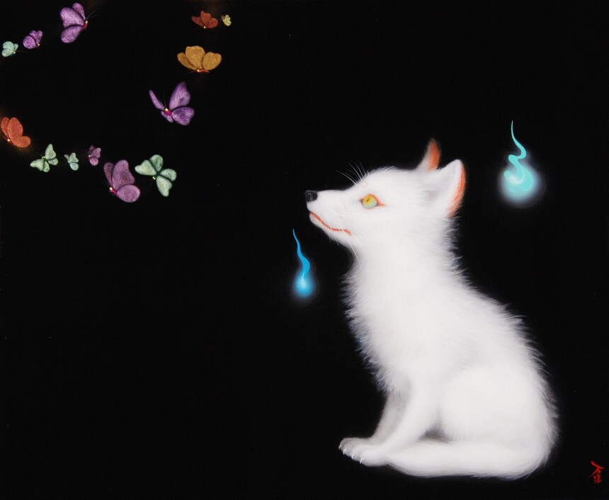 「幸福とは何か。心が満ちているとはどういうことか」と問い掛けながら制作に向き合う作家にとって「黒」は果てしない世界、力の象徴であり、「すべてを包み込む強さと智慧を宿す色」だ。