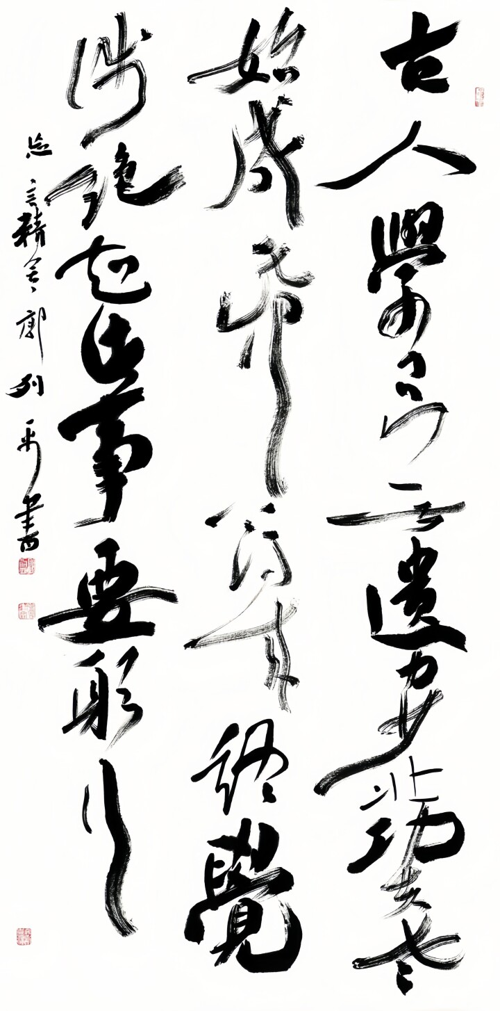 中国北方の雄大で大らかな気象と、江南の秀麗な美しさ、さらに古代の多くの大家の名作に長年親しんできたことが、郭列平に文化融合の契機を与え、その書風形成における重要な人生的基盤を築いた。