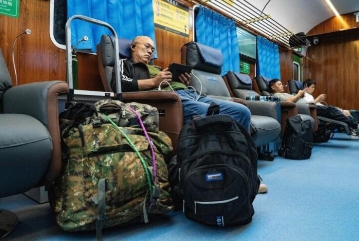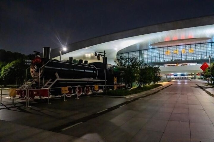 杭州東駅でレトロな車両を模した夜間休憩エリアの試験運用が開始した。