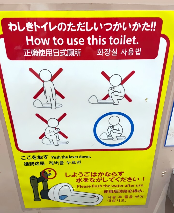 なお、中時新聞網は記事最後の部分で、「日本に行って『しゃがみ式便器』に遭遇した場合の正しい使い方を紹介した。水洗レバーの扱いについては上記の専門家の提案を採用したが、それ以前のトイレに入った時点の知識として「壁に向かってしゃがむこと」と説明した。