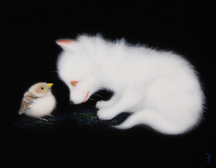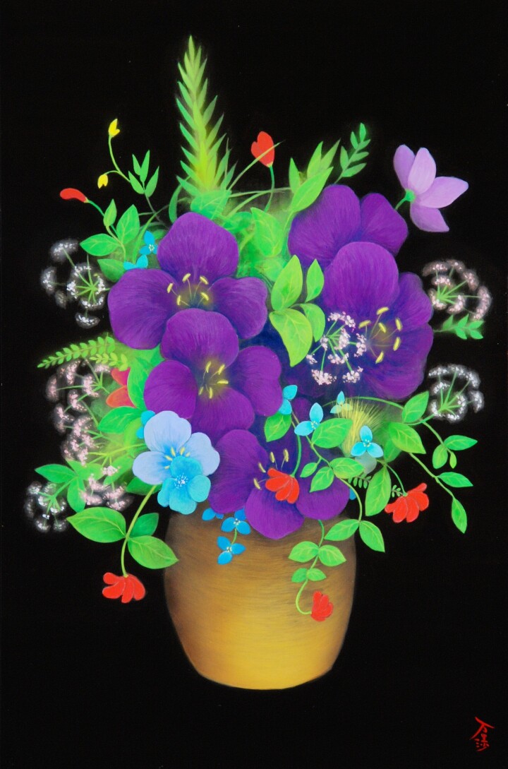 「幸福とは何か。心が満ちているとはどういうことか」と問い掛けながら制作に向き合う作家にとって「黒」は果てしない世界、力の象徴であり、「すべてを包み込む強さと智慧を宿す色」だ。