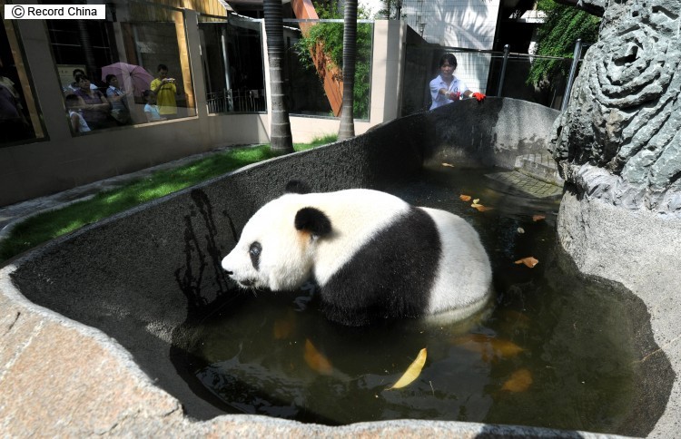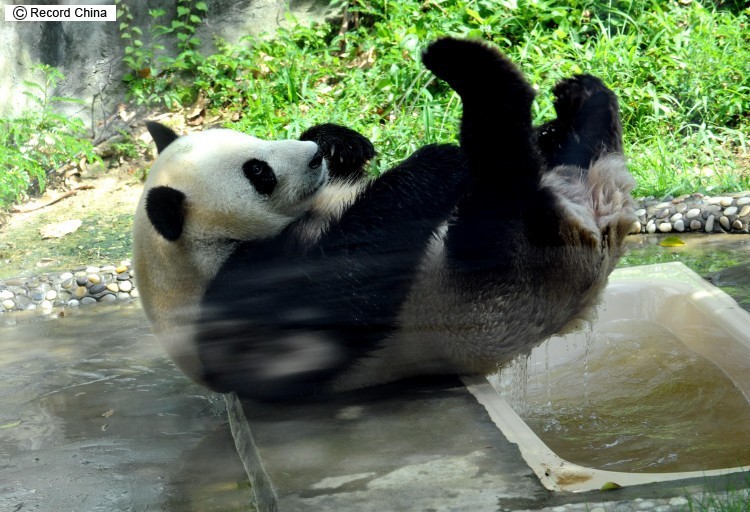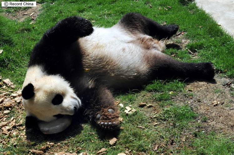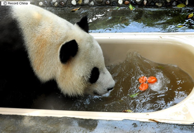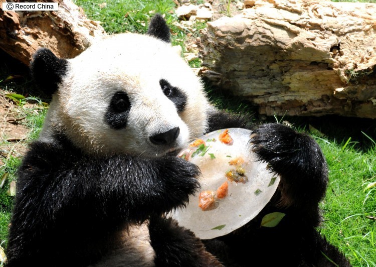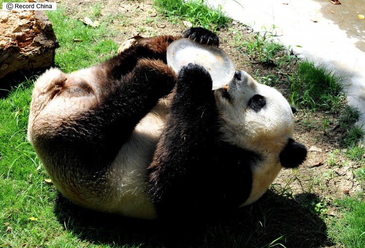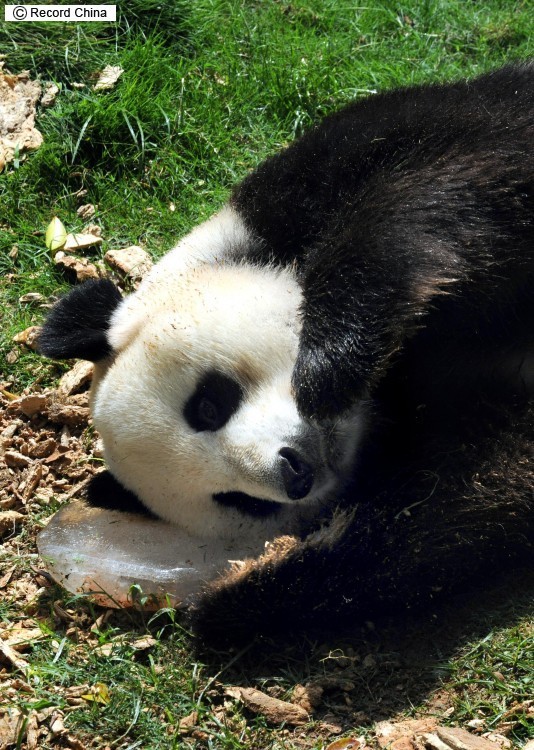 28日、福建省福州市の動物園では、飼育員たちが猛暑にあえぐパンダたちのために、エアコン付きの飼育舎や冷やしたフルーツ、冷水風呂などを準備したという。中でも喜んだのは大きな氷塊。枕がわりにしてお昼寝をしたり、かじりついたりして涼をとった。