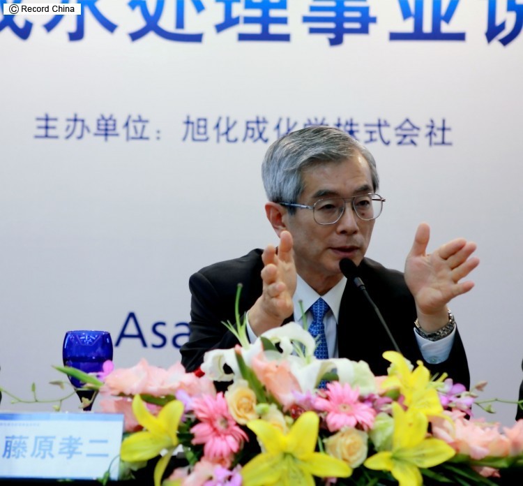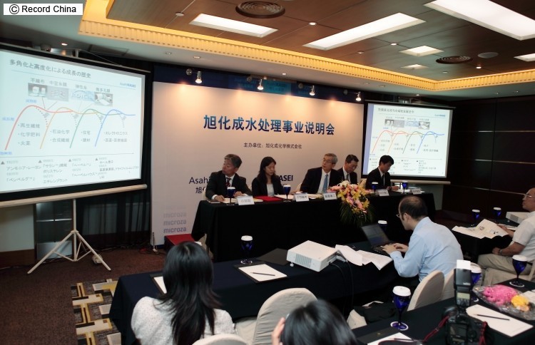 7日、北京市で中国光彩事業基金旭化成水環境保護専門基金の立ち上げ式典が挙行された。旭化成は同基金に2000万元(約2億8400万円)を寄付、さらに緊急用浄水装置2台を寄贈した。写真は立ち上げ式典。