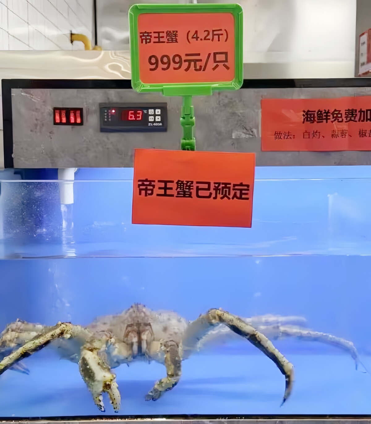 中国メディアの上遊新聞によると、南京大学仙林校区内の食堂に丸ごと1杯のタラバガニが登場した。価格は999元(約2万1478円)。