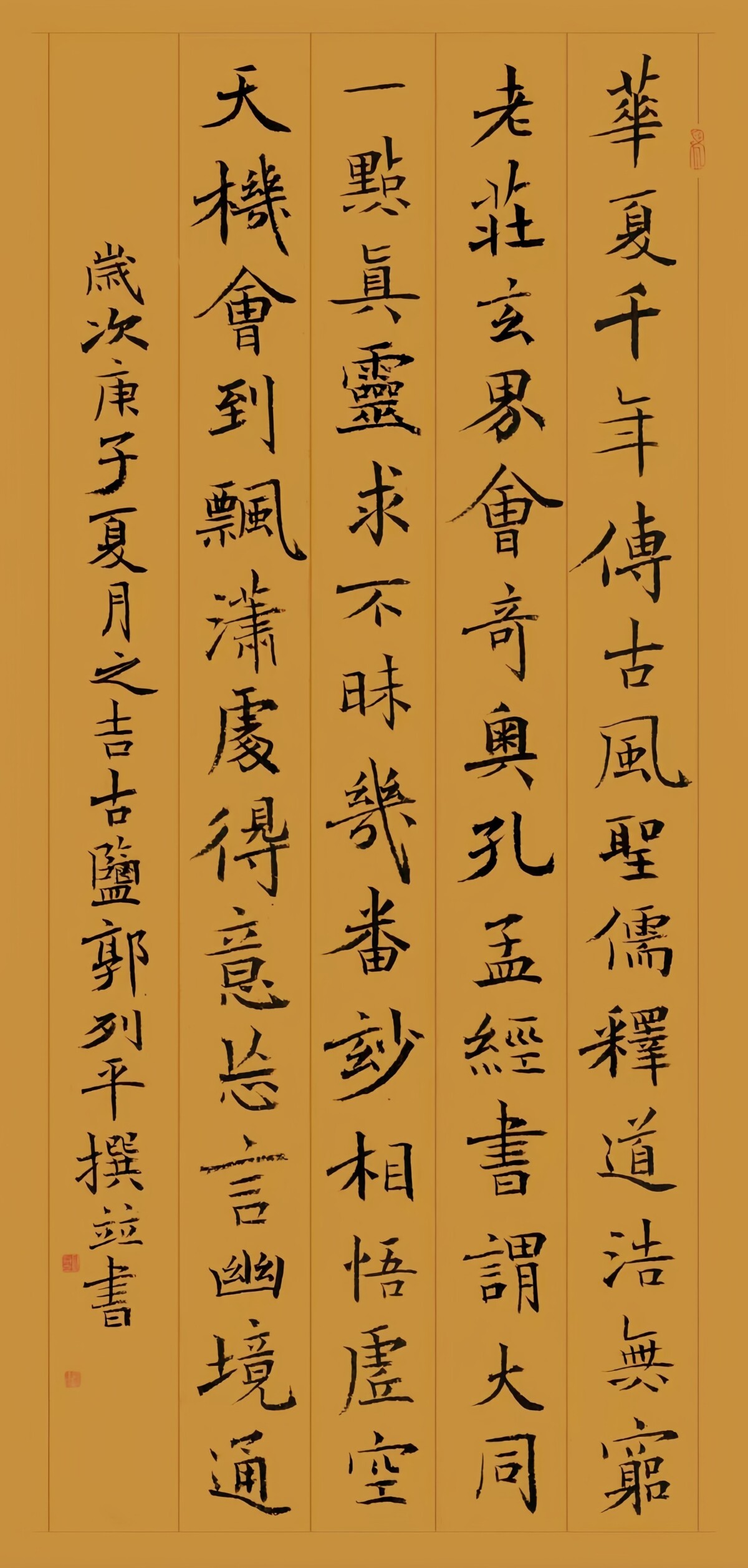 郭列平は若い頃、中央美術学院中国画学部の書法専攻、首都師範大学書法研究院、中国芸術研究院の中国画・写意人物専攻で学んだ。